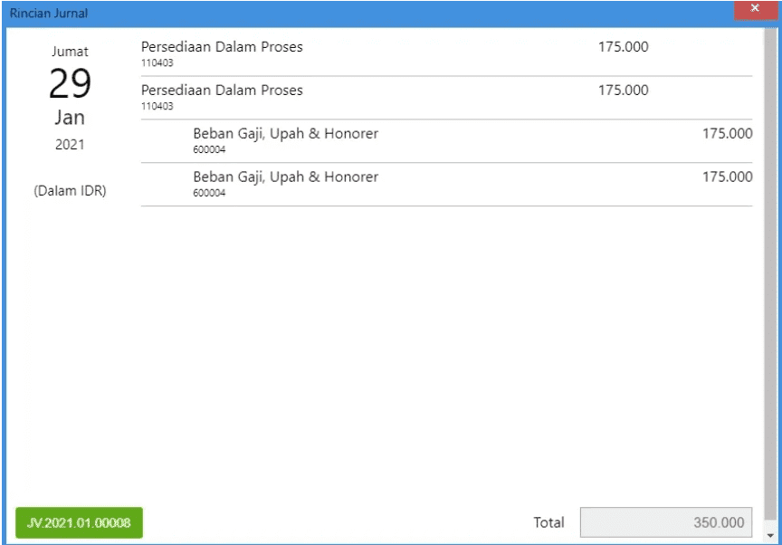 7. Simpan transaksi dan jurnal yang terbentuk adalah sebagai berikut ini.