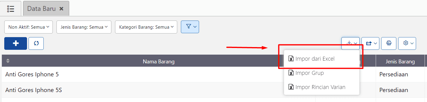 2. Melalui import Daftar Barang