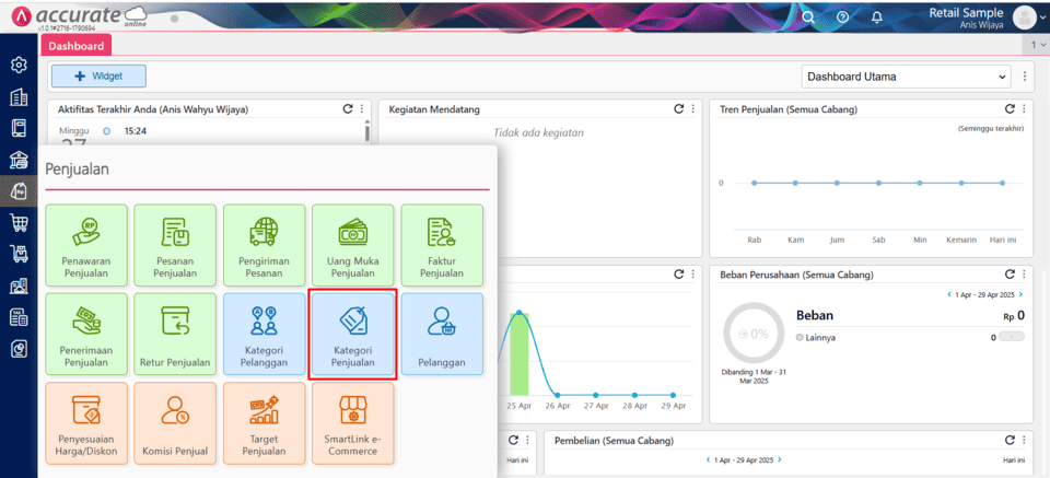 2. Silahkan masuk ke dalam menu Penjualan – Kategori Penjualan.