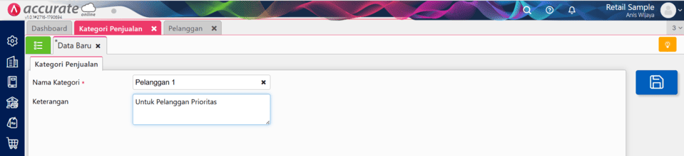 3. Untuk membuat kategori penjualan, silahkan isi Data Nama Ketegori dan keterangan, seperti gambar dibawah ini.