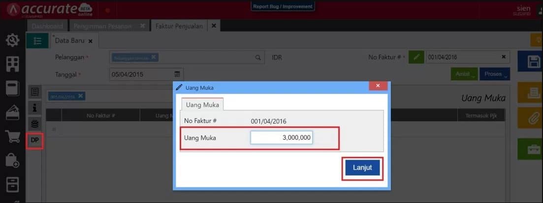 Jika Anda melakukan transaksi DP, maka dengan aplikasi ini dapat juga membuat uang muka penjualan partial Accurate Online lebih mudah. Anda dapat mencoba 1 bulan dengan daftar dan login disini.